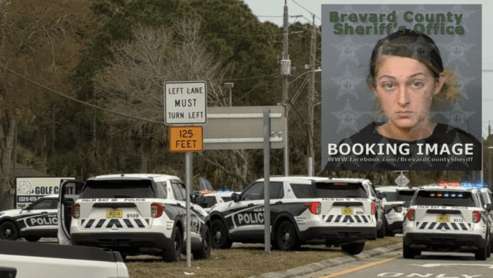 A 19-year-old woman was arrested Friday afternoon after Palm Bay police say she fled an attempted felony traffic stop in a vehicle reported stolen out of Stuart, drove through busy shopping areas, and crashed at a business on Malabar Road, according to a probable cause affidavit.