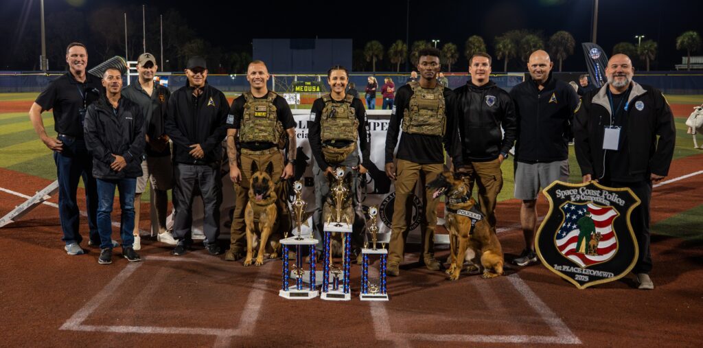 The Military Working Dog Team from the 45th Security Forces Squadron dominated this year’s Space Coast Police K-9 Competition, taking home first, second, and third place in a clean sweep that showcased elite training and remarkable teamwork between handlers and their dogs.