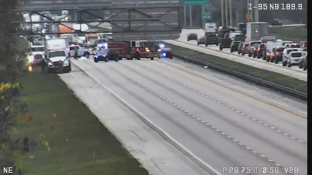 Northbound lanes of I-95 at mile marker 190 by Pineda Causeway were closed this morning after a pedestrian was struck and killed by 2 semi-trucks according to officials.