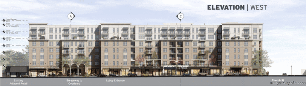 • Architectural design elements intended to match Cocoa Village’s historic character