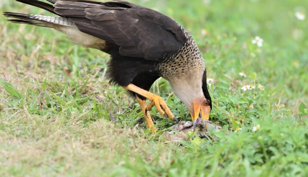 On the other wing, the crested caracara is a striking member of the falcon family known for its bold and opportunistic behavior. Unlike many birds of prey, crested caracaras display a diverse diet, including small mammals, reptiles, and carrion. Their distinct appearance, characterized by a black cap and crest, sets them apart, creating a charismatic presence in the wetland landscape.