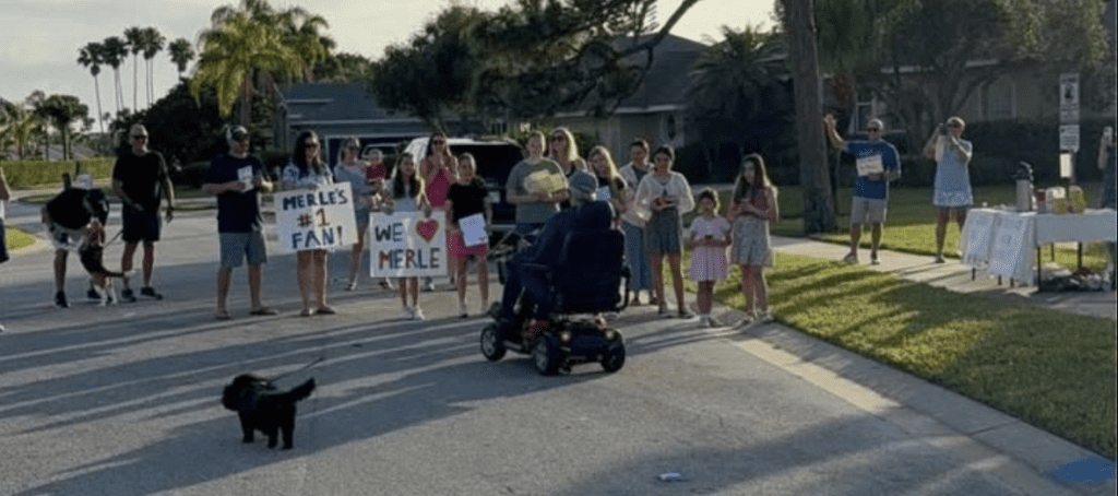 Suntree, FL – In a heartwarming display of community spirit, residents of Suntree came together to celebrate a beloved local figure known for his daily acts of kindness. Merle, affectionately dubbed “Mr. Merle” by the children of Suntree Elementary School, has become a cherished part of the morning routine for families in the area, thanks to his cheerful waves and warm smiles as he rides his electric scooter down St. Andrews each day.
