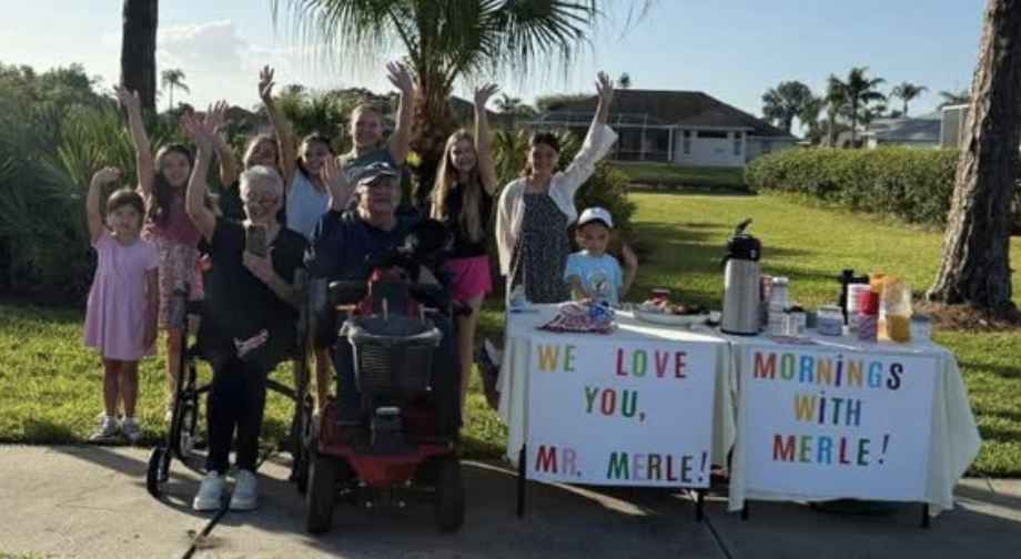 The post sparked a wave of responses from other parents and children who shared similar sentiments. It wasn’t long before Marta Leal-Homerick reached out to Vasile with the gentleman’s real name: Merle. Inspired by the outpouring of love, the children of Suntree Elementary School, along with their parents, decided to organize a special event called “Morning with Merle” to show their appreciation.