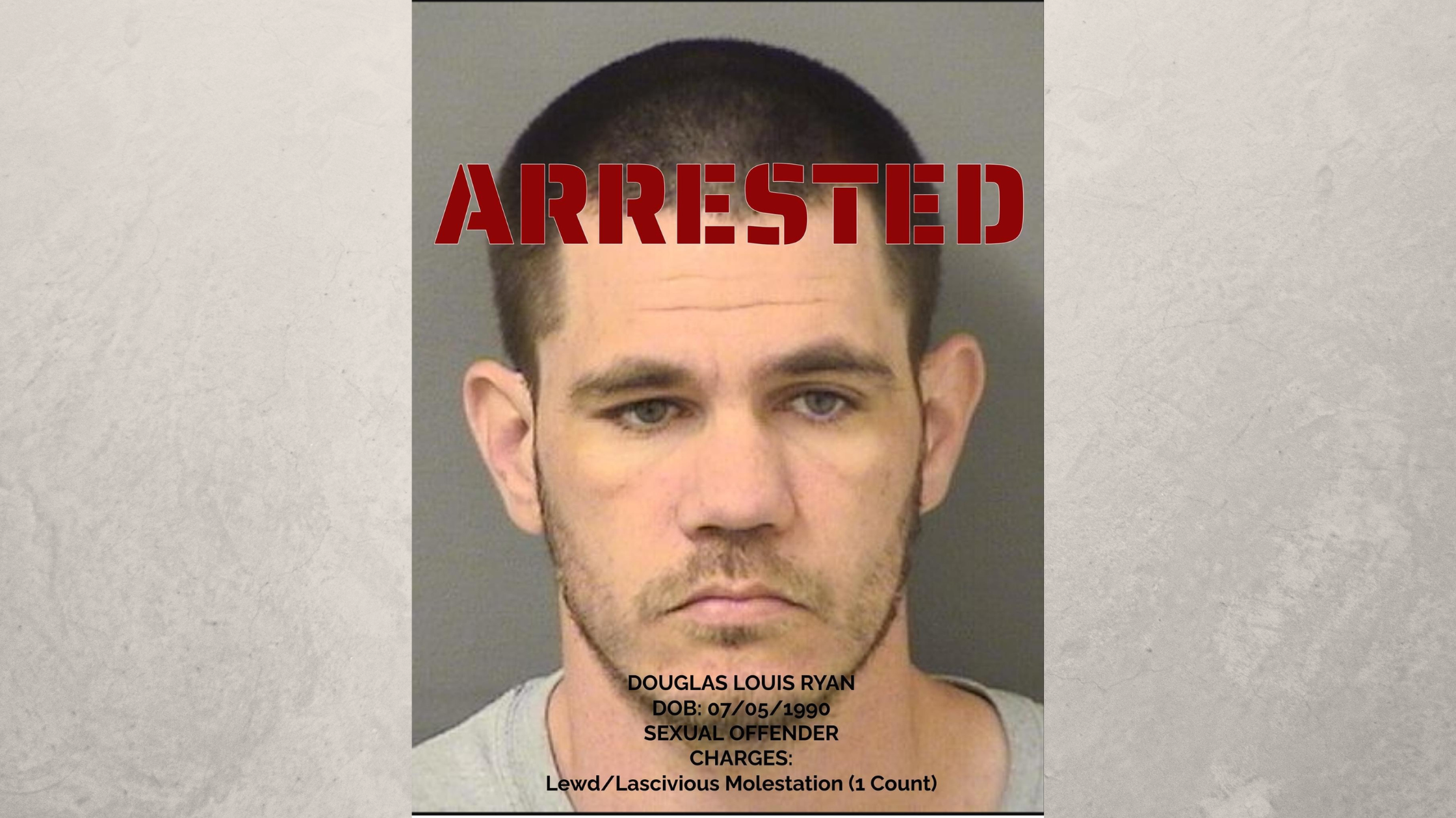 Prior to this incident, DOUGLAS RYAN had been classified as a Sexual Offender pursuant to his guilty plea to ‘Lewd or Lascivious Battery’ upon a child older than 12 years but younger than 16 years, here in Brevard County in 2010.