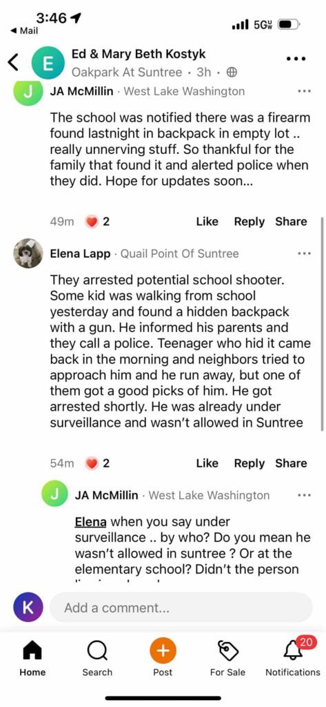 Local residents had already taken to social media to discuss the law enforcement presence in the area, with reports suggesting the juvenile suspect had been under prior surveillance and may have had previous interactions with law enforcement. According to one resident, a student discovered the backpack while walking home from school and alerted authorities.