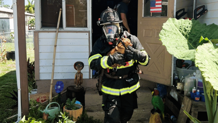 A Palm Bay Firefighter found the dog alive and was brought safely outside to be reunited with its grateful and emotional owners. No injuries were reported among residents or first responders.