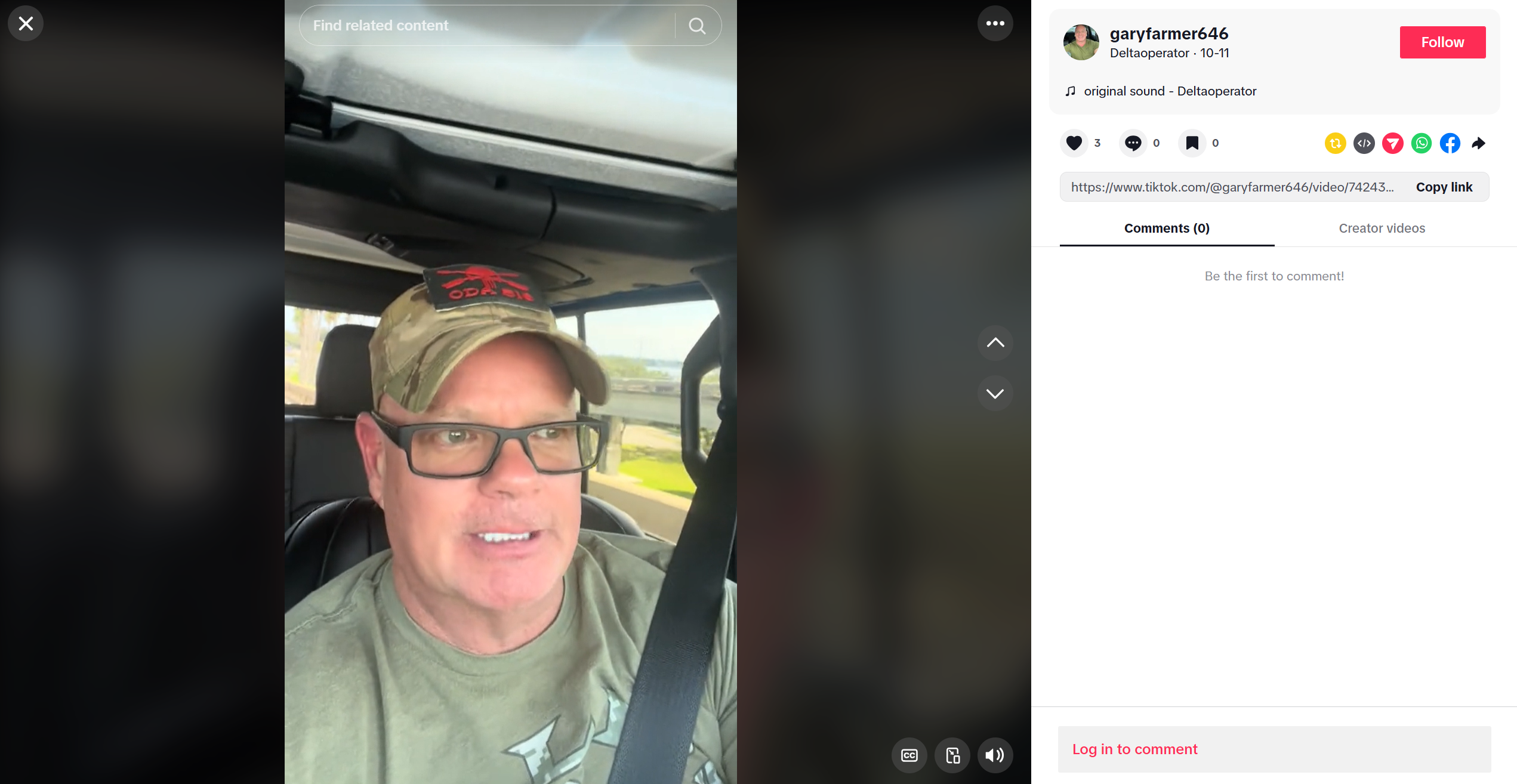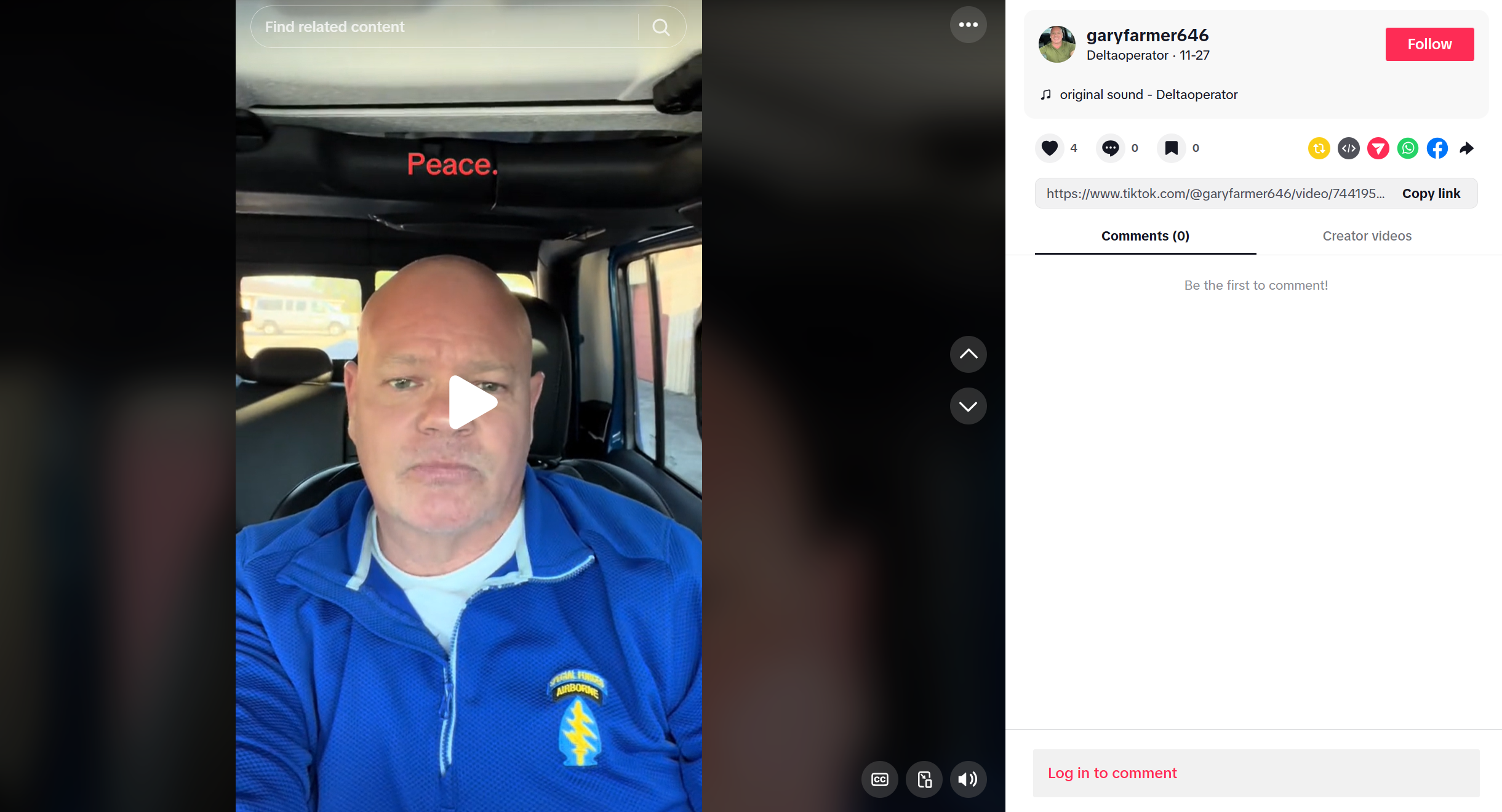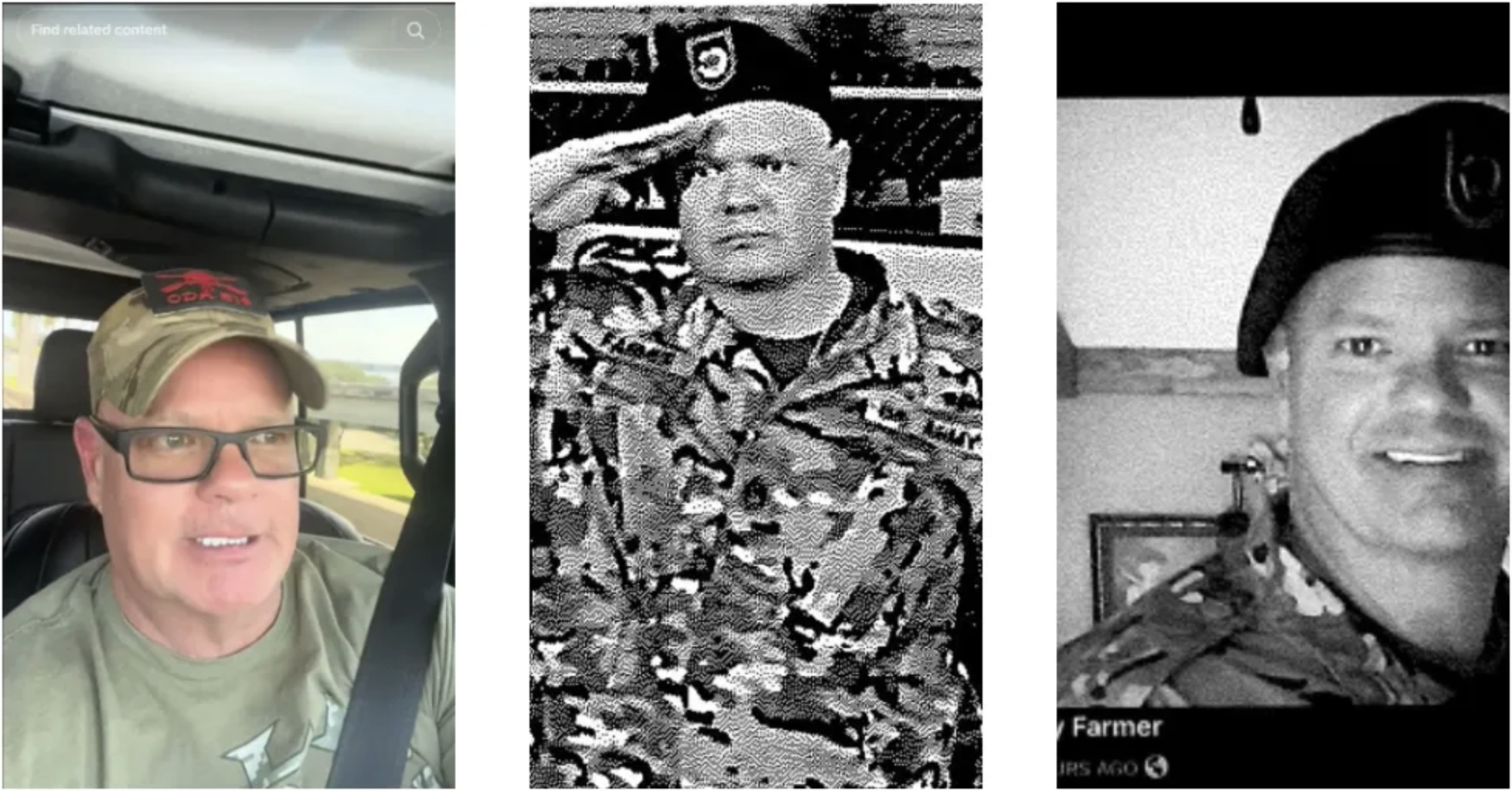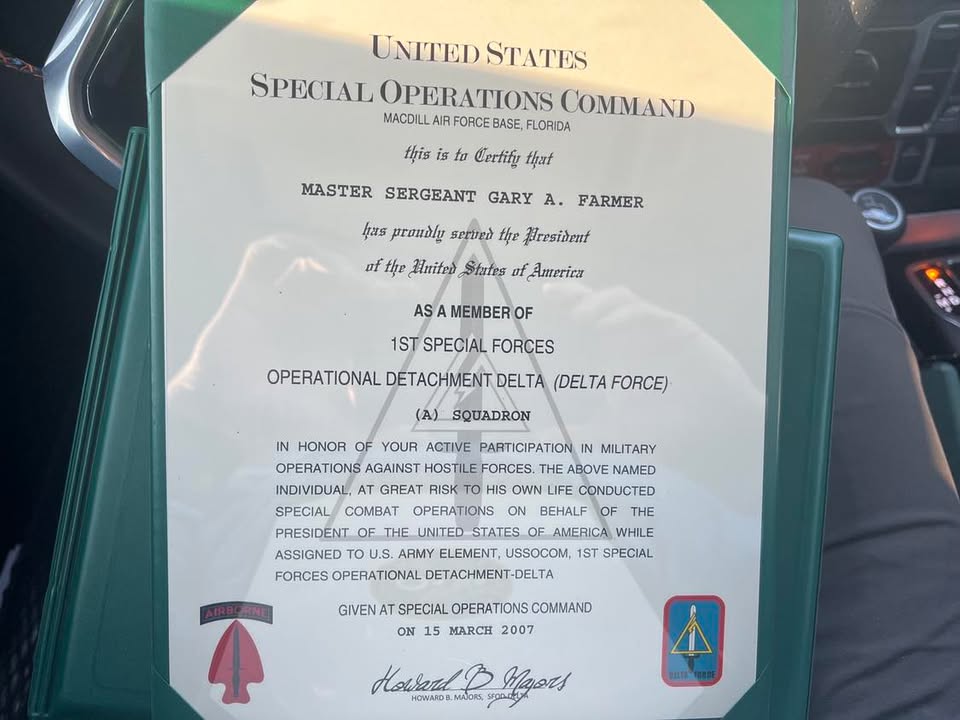 But Farmer did not stop at a vague mention of military service. Over the months and years that followed, the story grew. He wasn’t just a Green Beret, he was a Master Sergeant. He wasn’t just Special Forces, he was Delta Force, a member of the most secretive and elite special operations unit in the United States military. He wore it literally: on his TikTok account (@garyfarmer646, bio: “Deltaoperator”), in ODA 516 hats, in Special Forces Airborne jackets, in a Delta Force insignia tattoo on his forearm that he did not have in 2019 court photographs. He posted images on Facebook — under the name “Gary Melissa Farmer” — of soldiers in combat gear, in military vehicles, firing weapons, as if they were images of his own service.