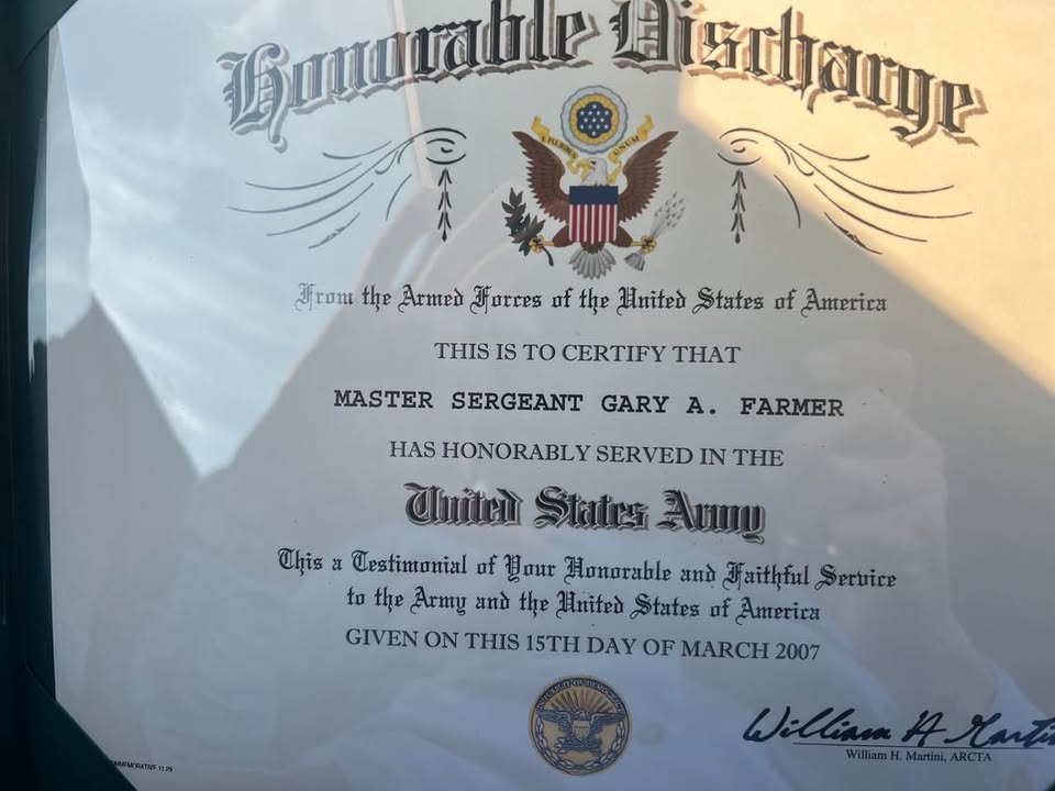 Gary Farmer’s elderly father — himself a genuine veteran who receives VA health benefits — has been the subject of what family members describe as a systematic financial and identity exploitation campaign by his son. Family members allege that Gary Jr. has been intercepting his terminally ill father’s VA medications, potentially to divert them for personal use or sale. There are also concerns that Gary Jr. is positioning himself to gain access to his father’s estate and inheritance through deception, including potentially representing himself as his father’s caretaker to authorities while the father’s true condition and wishes remain unverified.
