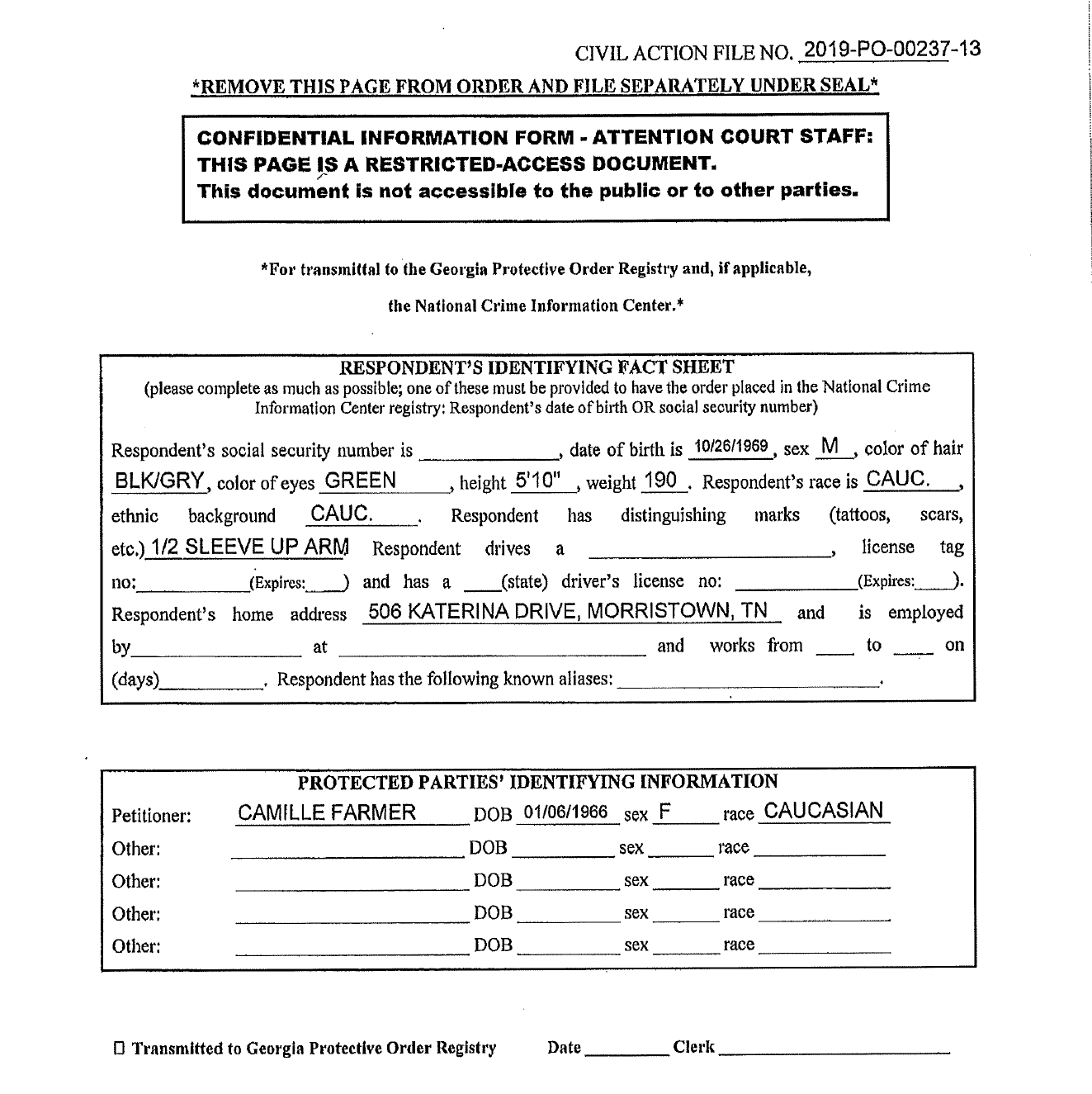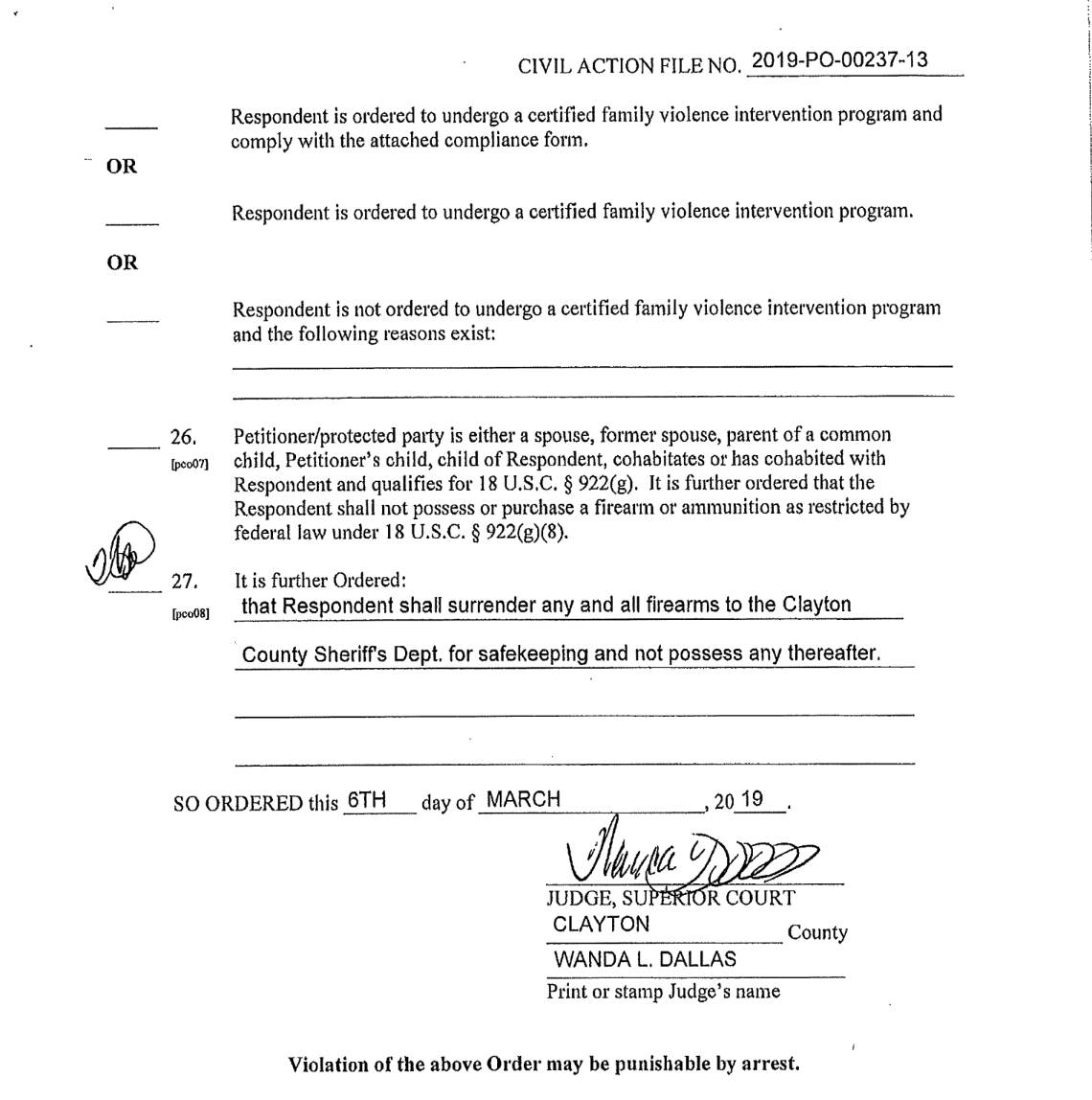 • 2019 Georgia Domestic Violence Protective Order — Court-issued protective order; subject to federal firearms prohibition under 18 U.S.C. § 922(g)(8)