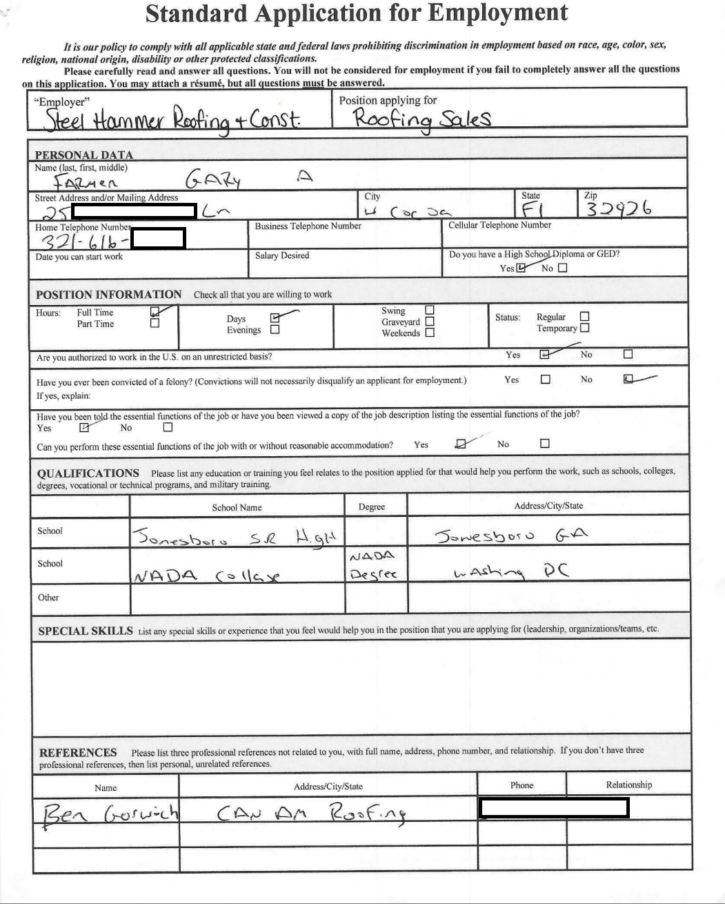 Farmer applied to work at Steel Hammer Roofing and, per documented communications obtained by this reporter, presented his military background as a central qualification. He claimed to be a retired Special Forces Master Sergeant — the ten fake certificates likely on hand to answer any skepticism. The company, operating in good faith with veteran clients, welcomed him.