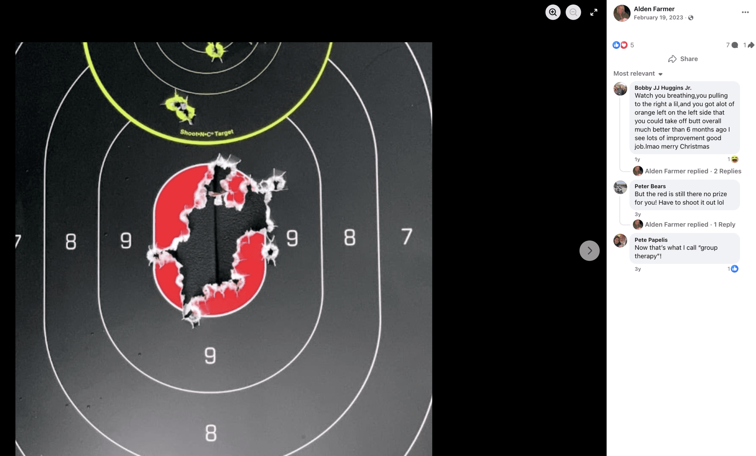 • Multiple shooting targets with bullet holes — documenting active use of firearms
