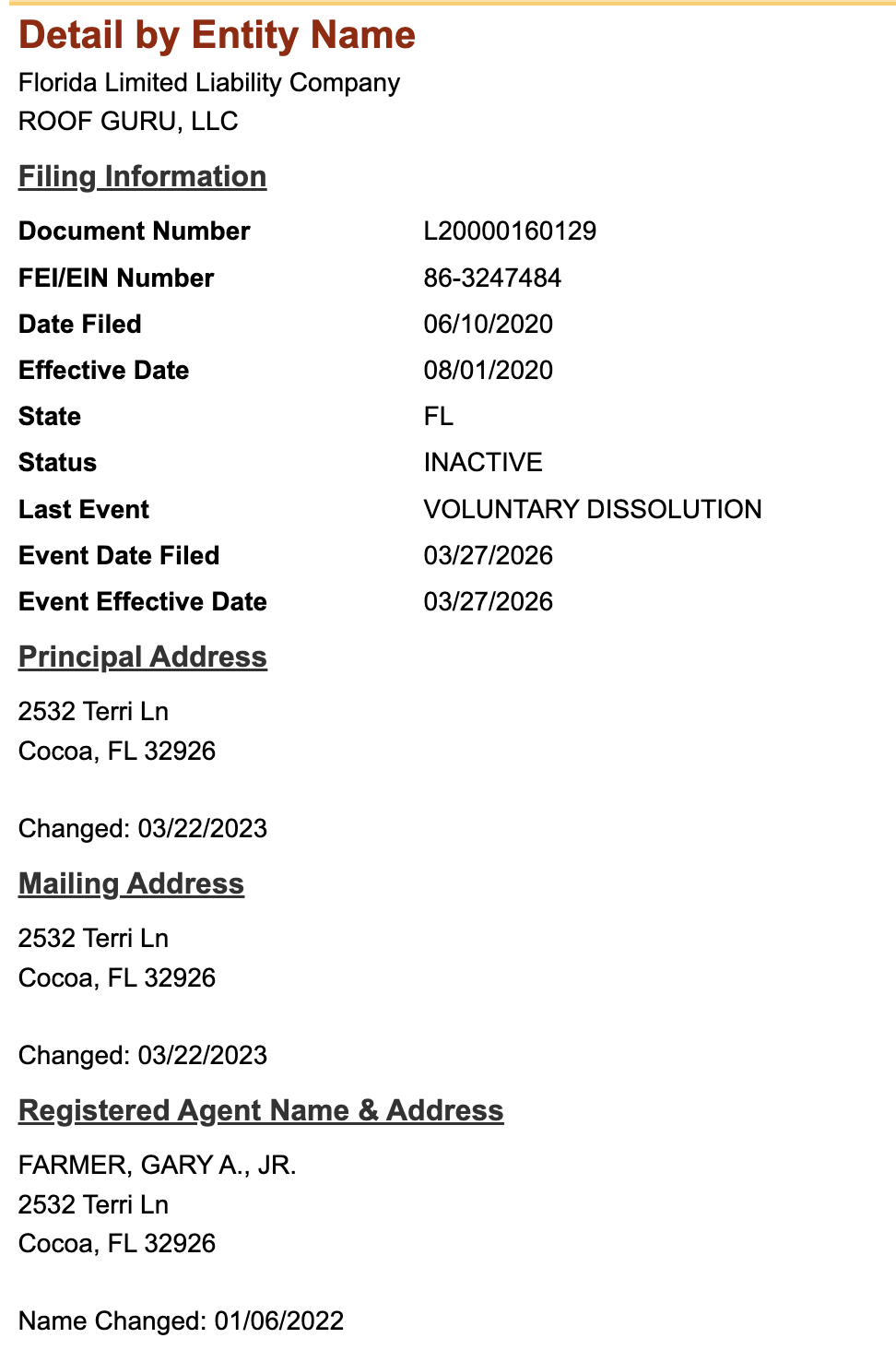 Records show that the very same day Farmer was served the temporary inunction, he voluntarily dissolved his business the Roof Guro.