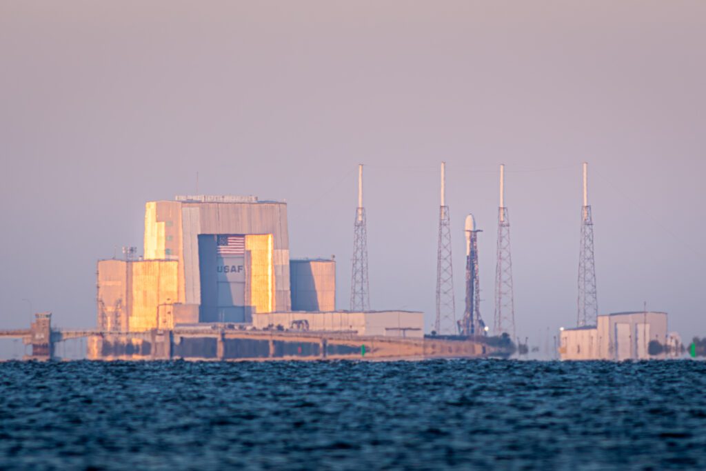 A SpaceX Falcon9 rocket poised for launch on LC40 in CCAFS. Image by Richard P. Gallagher