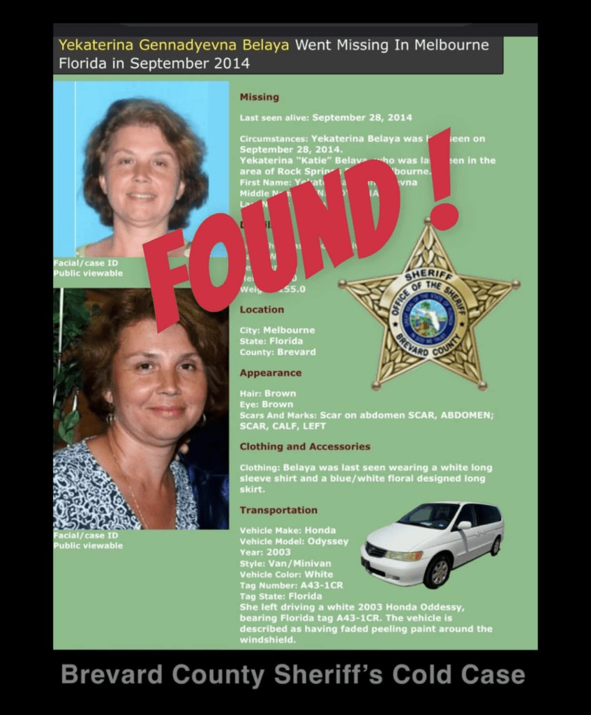 A somber chapter in a decade-long mystery has come to a close with the discovery of Yekaterina (Katya) Belaya’s remains in Melbourne, Florida. After 10 years and 84 days of unanswered questions, investigators and loved ones now have some closure.