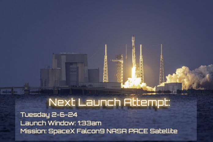 In an era where understanding Earth’s climate dynamics is more critical than ever, NASA’s Plankton, Aerosol, Cloud, ocean Ecosystem (PACE) mission, aboard SpaceX’s Falcon 9 rocket, will be a vital asset to furthering and tracking our knowledge of the Planet. Set to launch from Cape Canaveral’s Space Launch Complex 40, this mission embodies the culmination of years of meticulous planning and collaboration between NASA and SpaceX, aiming to extend our comprehension of the planet’s climate system and its intricate processes. Lift is set for 1:33am Tuesday morning with the first stage booster returning to LZ 1 at CCSFS.
