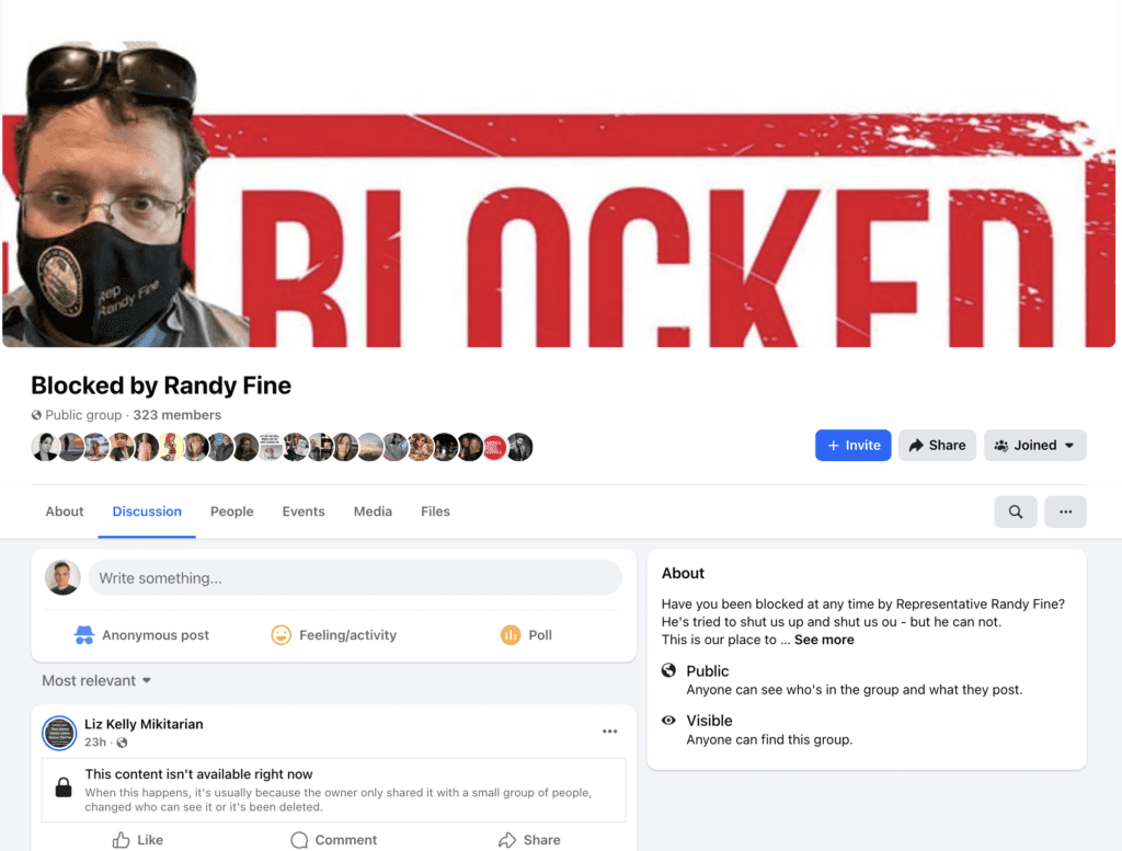 The lawsuit comes amid long-running complaints from residents who say they have been blocked by Fine across multiple social media platforms. Critics frequently point to a Facebook group titled “Blocked by Randy Fine,” which lists hundreds of members who say they were blocked on various Fine accounts, including his official X account.