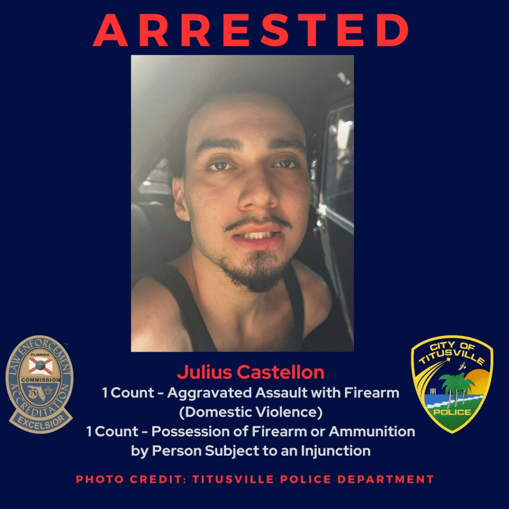 Castellon is charged with aggravated assault with a firearm in a domestic violence incident, as well as possession of a firearm or ammunition by a person subject to an injunction. He is currently being held at the Brevard County Detention Center on a no bond status.