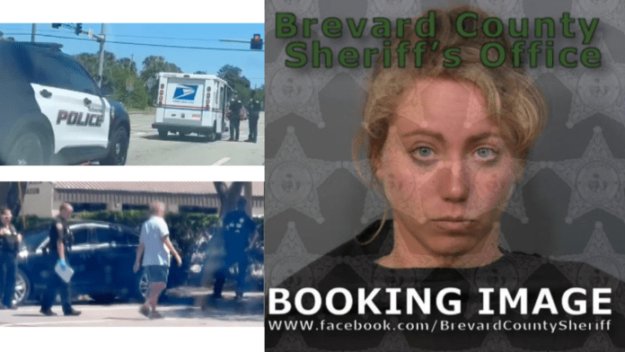 According to the Melbourne Police Department, the driver, identified as 33-year-old Katelyne Dye, was spotted by witnesses driving erratically on South Harbor City Boulevard around mid-afternoon on April 12. The reporting vehicle followed Dye’s USPS truck after seeing red Solo cups being thrown from the driver’s window and noticing the smell of alcohol coming from the truck.