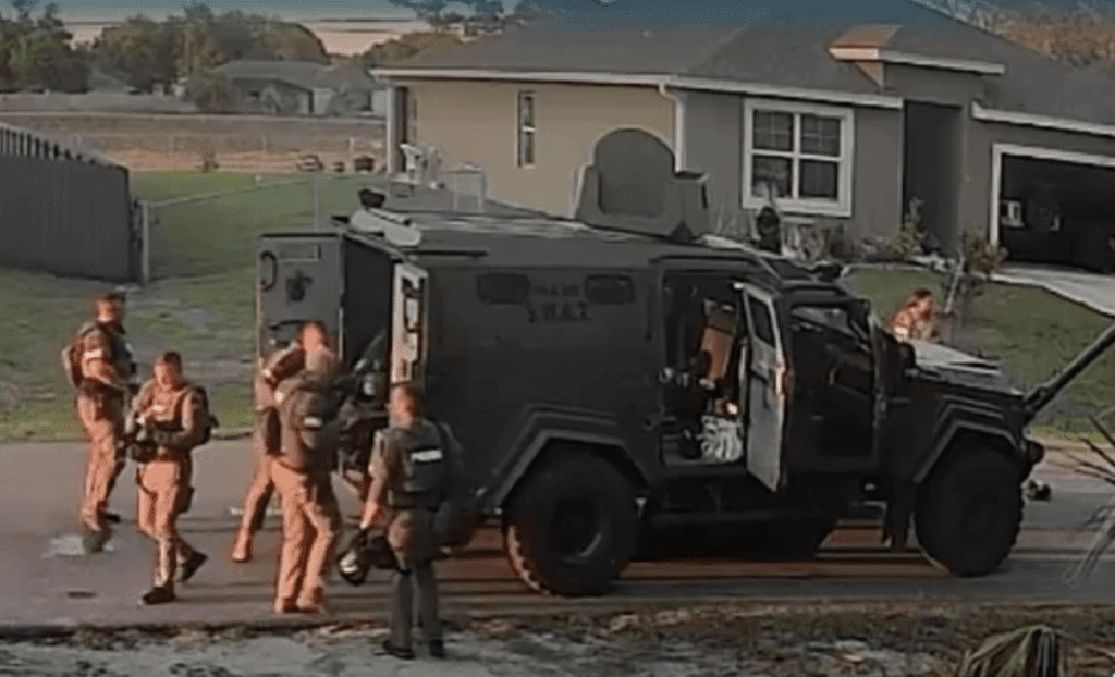At approximately 4:43 p.m., Grimmer briefly opened the front door, fired additional shots, and retreated back inside. At that point, Palm Bay Police activated its SWAT Team and Crisis Negotiations Unit.